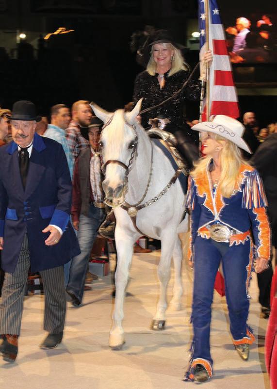 Audiences at the iconic Western Fantasy looked forward to Sharon’s opening of the evening’s festivities by circling the venue on her Arabian horse Thunder while holding the American flag