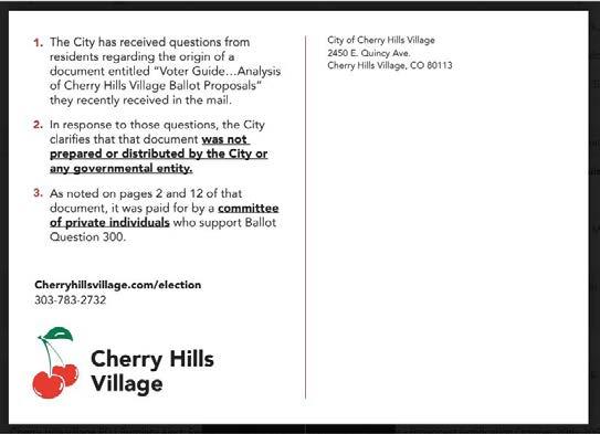 That brought up the question of where the future city council member stood on the three CHV ballot issues concerning Quincy Farm. He told us, “I’m still formulating my position on all of QF. I met with the foundation (Cherry Hills Land Preserve). I’ve also met with some of the people behind Ballot Issue 300, and I’m meeting with current council members, so I’m formulating my position on that, but, generally speaking, QF is adja-