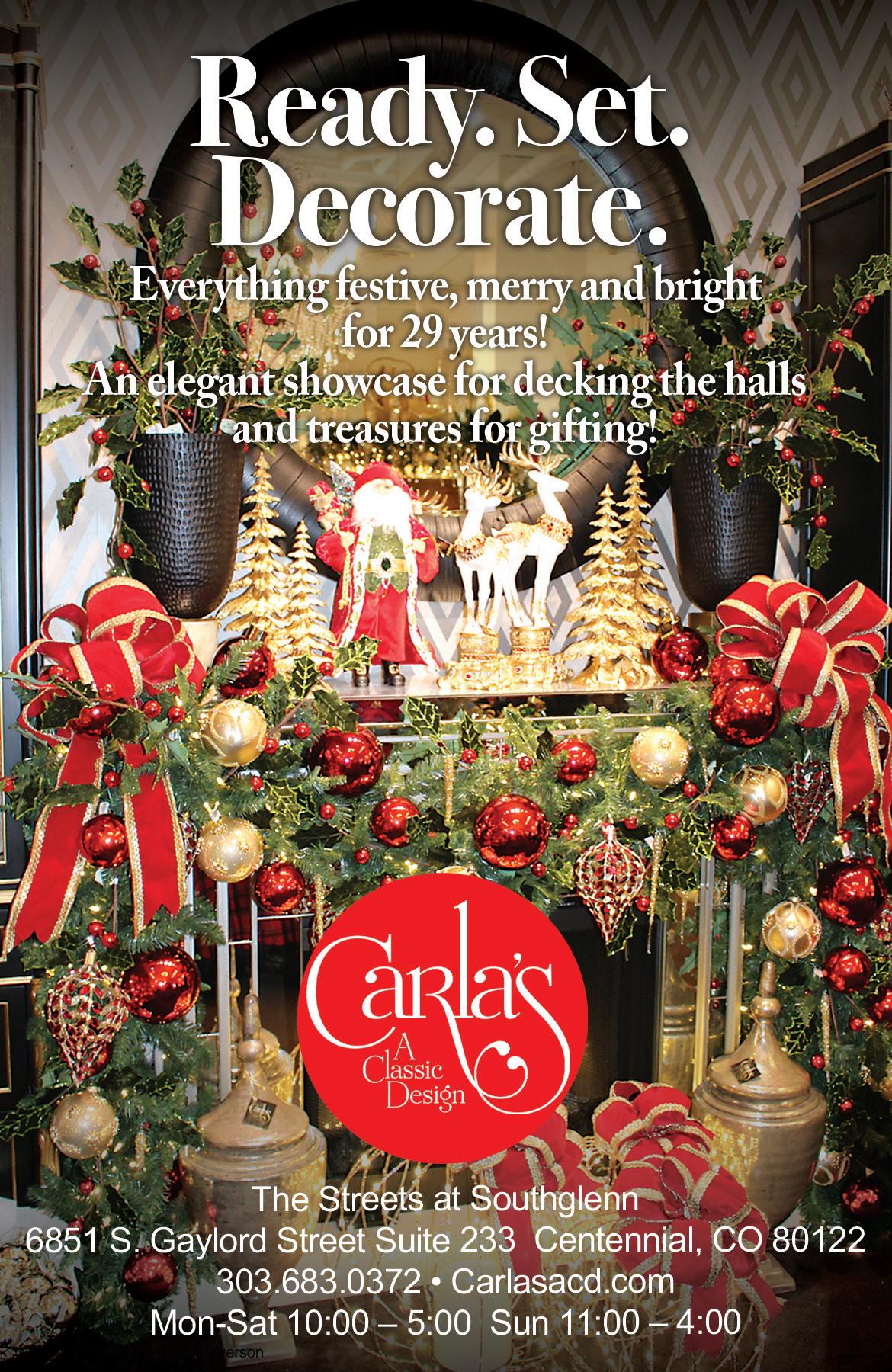 Carla’s is decorated for the Holidays! SHOP LOCAL! Unique & festive holidays decor from vintage to modern. A magical experience for 29 years. The Streets at Southglenn, 6851 S. Gaylord St., Ste., 233, Centennial.