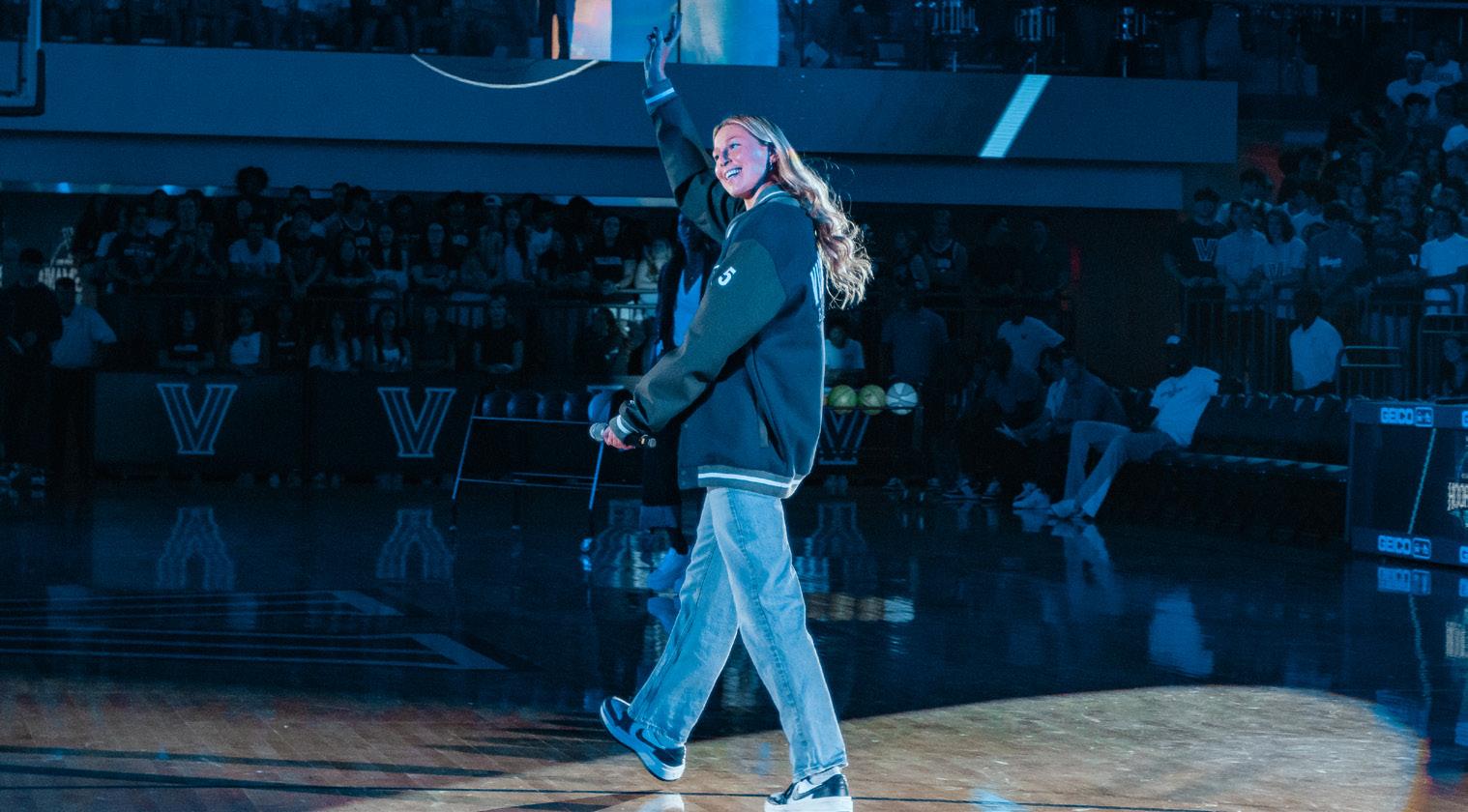 which was attributed by some students to a performance Ross had in Miami the same night. Hoops celebrated both teams with walkouts, dances, three-point and brand-new skills competitions and the annual blue-and-white scrimmage, where after a year-long absence, streamers returned and covered the floor of the Finn after the first basket was scored. The gem of Hoops, however, always comes with the surprise musical performance, which in Villanova’s
