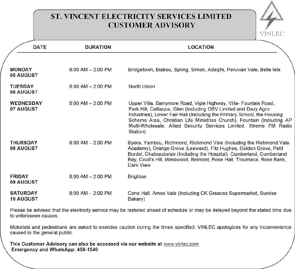 In appealing to its customers’ understanding, VINLEC, in the advisory, said that Hurricane Beryl “has caused significant disruptions, preventing the reading of all electricity meters. Therefore, we have had to estimate the bills for most customers this month.”