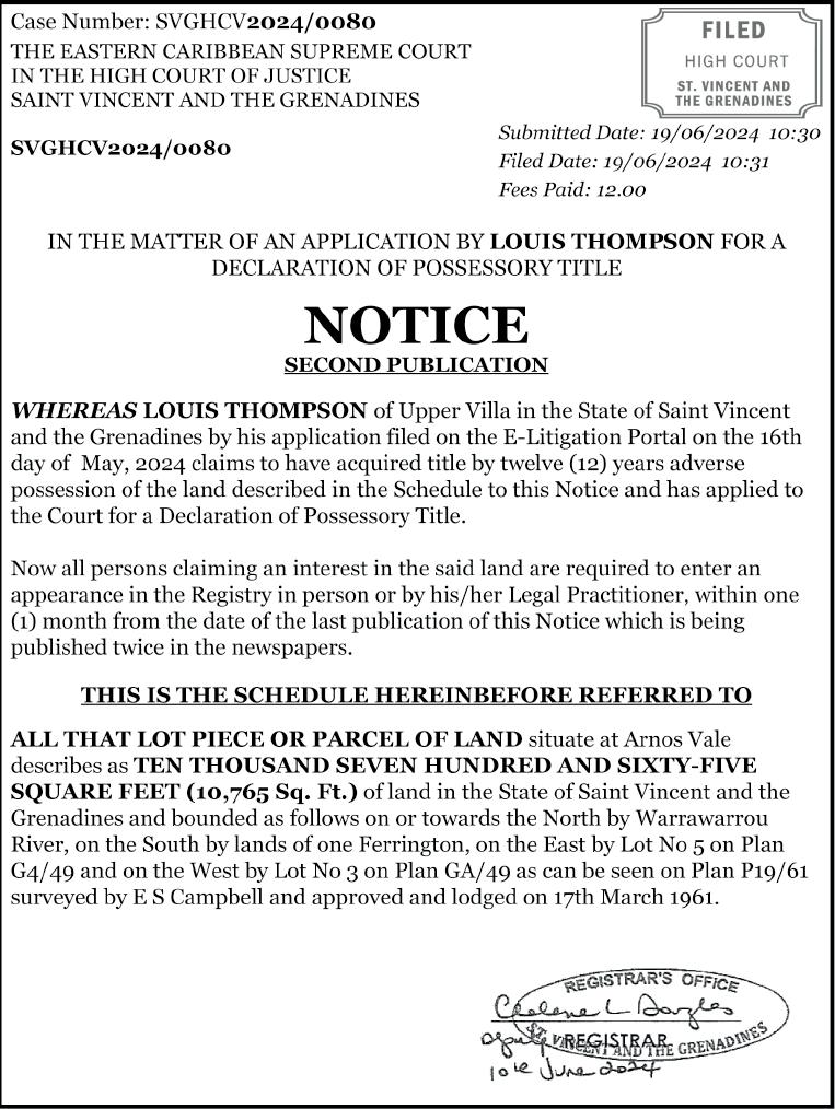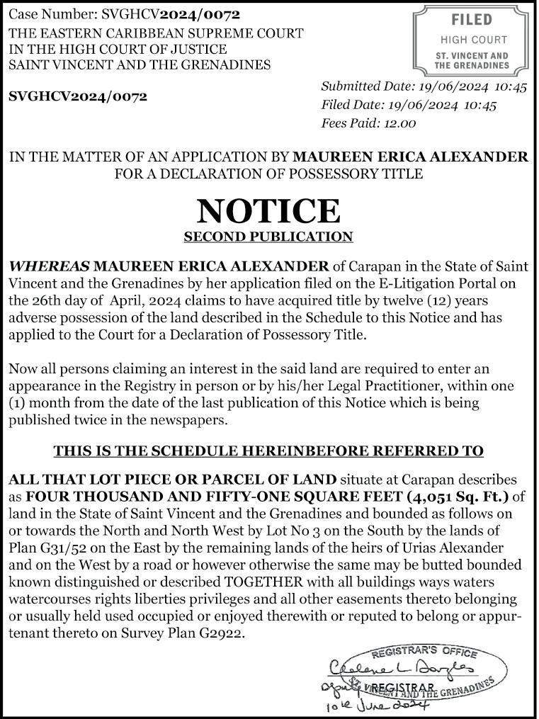 FOUR DAYSafter Olan Michael Lyscott aka ‘Metal’, a 20-year-old unemployed resident of Old Montrose/Layou, appeared at the Serious Offenses Court on a murder charge, he has been slapped with a similar charge.