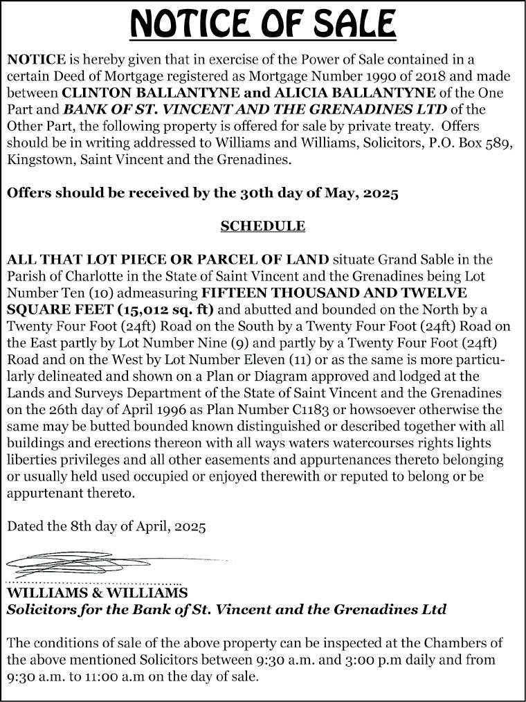On Wednesday 2nd April, during a New Democratic Party (NDP) press conference, Glenford Stewart - engineer and former NDP Member of Parliament for the Southern Grenadines and a Minister of Government - said that the sheet piles at the port were at 40 feet, too short, contributing to the loss of reclamation material at the site. Continued on Page 3.