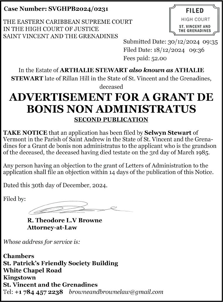 S.D.A Church Barrouallie Viewing: 1:00 p.m.