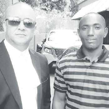 Dearon Glasgow (right) and his lawyer Grant Connell after Glasgow was freed on an illegal possession of firearm and ammunition charge.