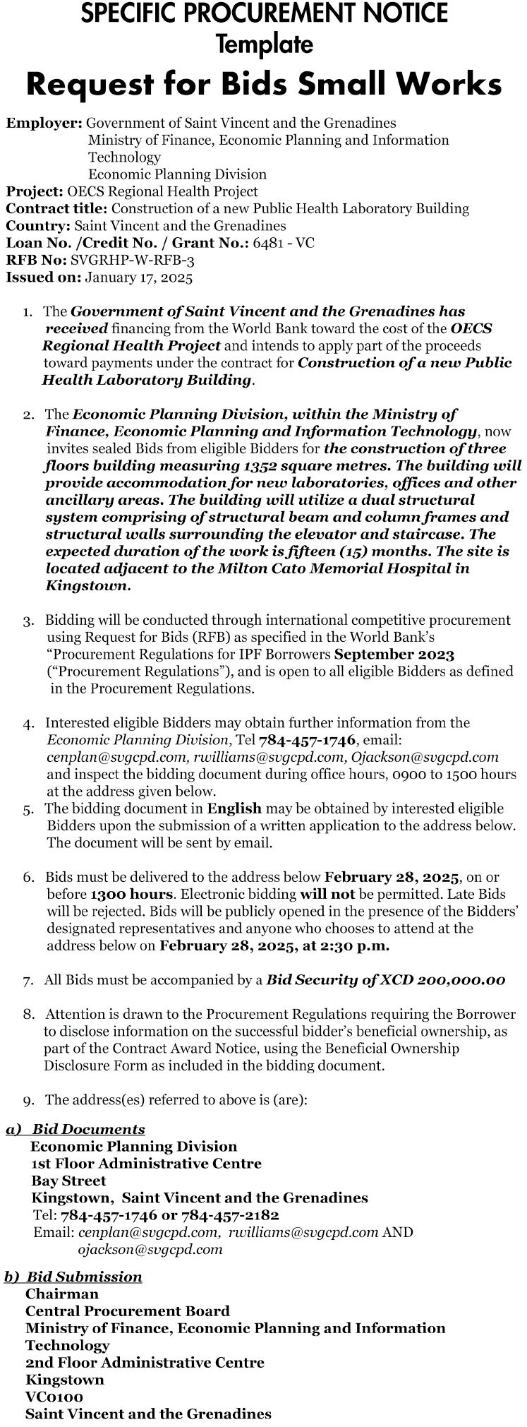* Over EC$8 million is to be allocated for work to be done on various police stations including Calliaqua, Layou, Paget Farm, Spring Village and Union Island;