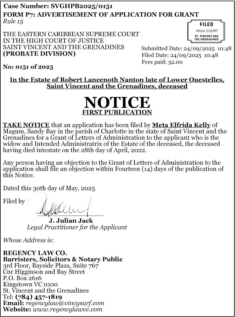 The Chief Magistrate then granted bail in the sum of $30,000 with one surety on condition that Lewis surrender his travel documents, report to the Calliaqua Police Station three times a week, and not have any contact with the victim, whether directly or indirectly.
