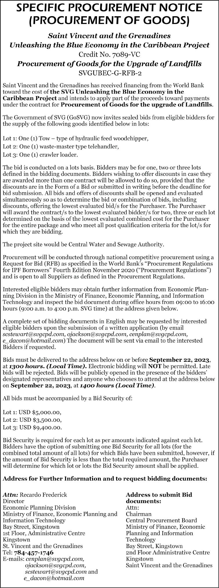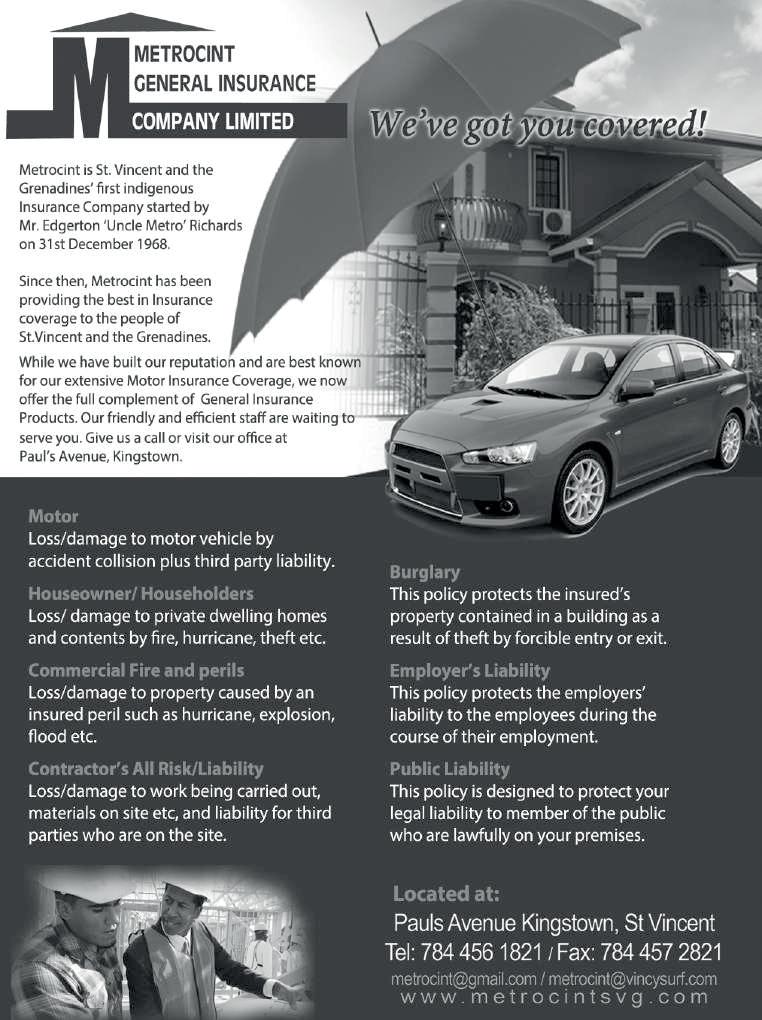 FRIDAY, AUGUST 18, 2023 VOLUME 117, No.33 www.thevincentian.com EC$1.50 Published by The VINCENTIAN Publishing Co. Ltd, St. Vincent and the Grenadines; Printed by the SVG Publishers Inc., Campden Park. AI REAL ESTATE Lowmans Ld 23,698 sq.ft @ $5.00 p.s.f. - $118,490.00 - BB172 Calder Pomsette 11,733 sq.ft @ $16.00 p.s.f. - $117,330.00 - BB209 Dumbarton 9,305 sq.ft @ $7.00 p.s.f. - $65,135.00 - BB214 Ratho Mill 10,186 sq.ft @ $35.00 p.s.f. - $355,510.00 - BB394 (784)- 457-2087/(718)-807-4376 office (784)-493-9431/(784)-533-0431donp@vincysurf.comwhatsappcell
