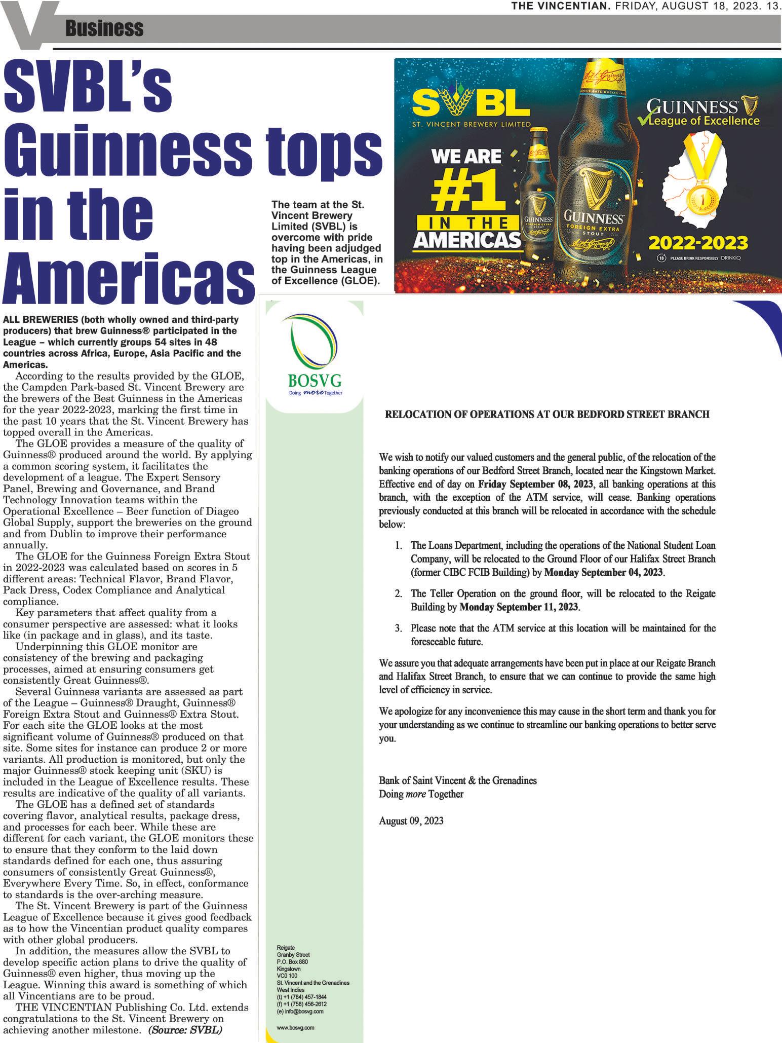 FRIDAY, AUGUST 18, 2023 VOLUME 117, No.33 www.thevincentian.com EC$1.50
