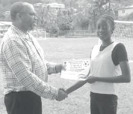 Carlicia Duncan, the most improved female player, received her certificate of participation from Dominique Sutherland.