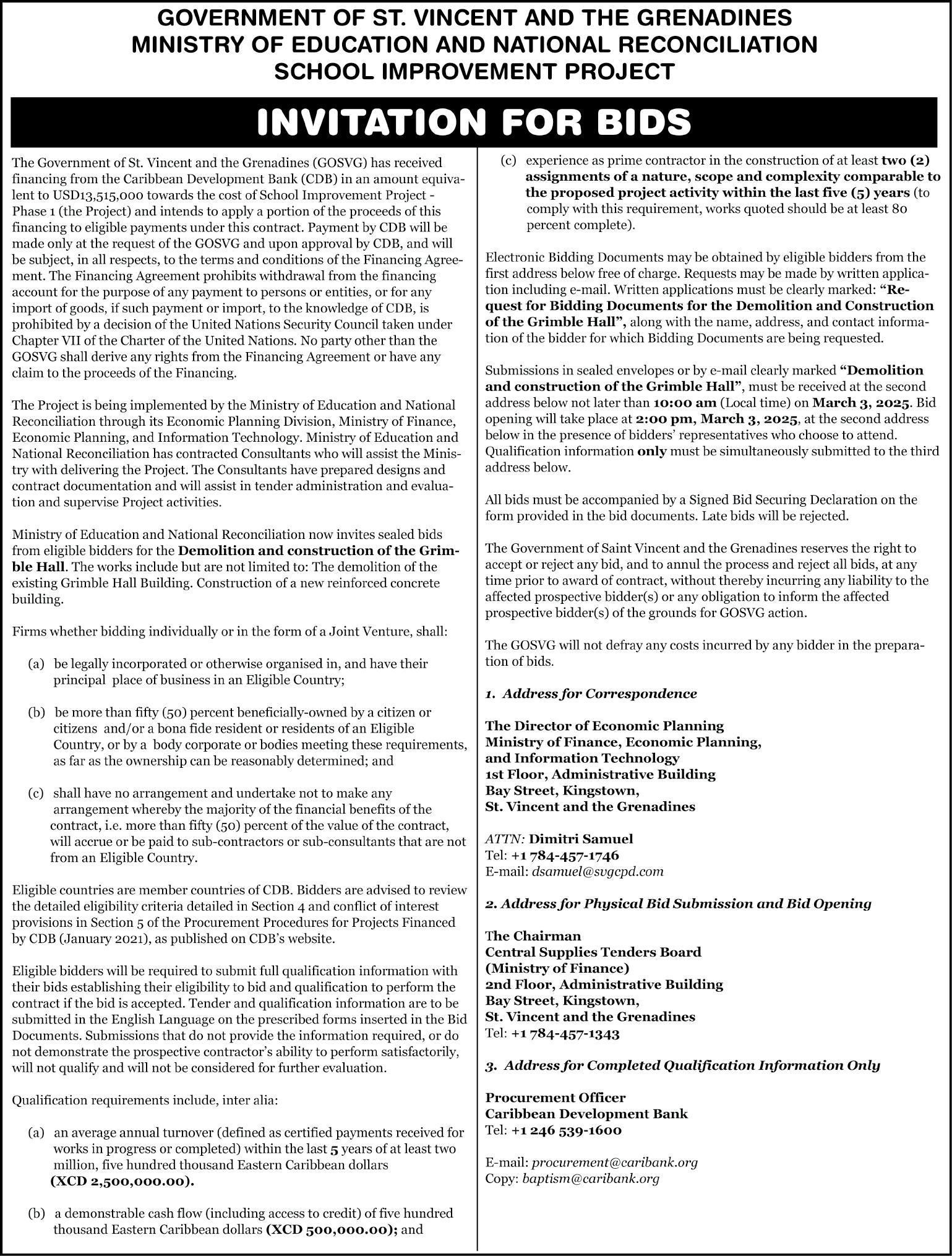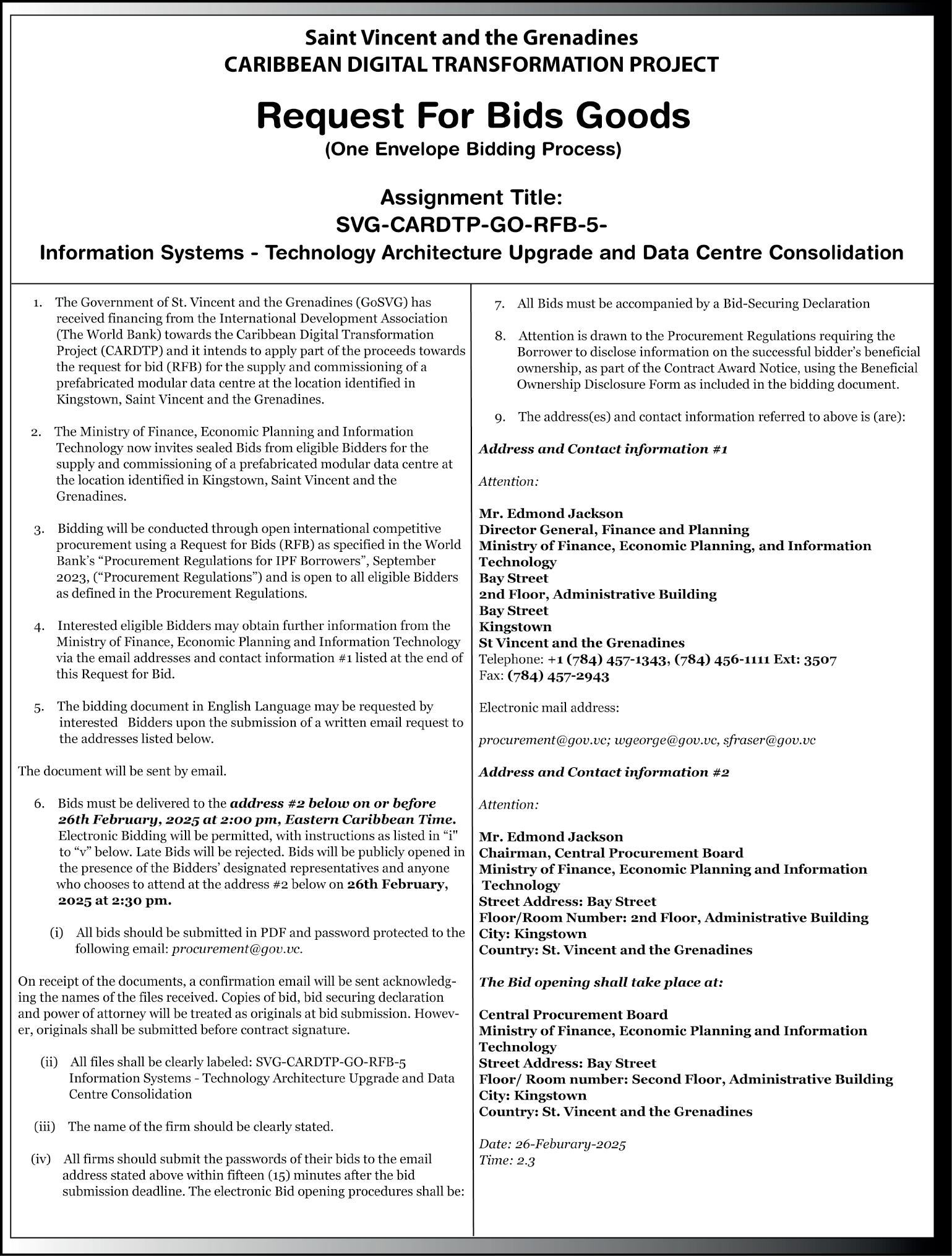 Note: The following is an extract from the 2025 Budget Presentation as delivered by Camillo Gonsalves, Finance Minister.