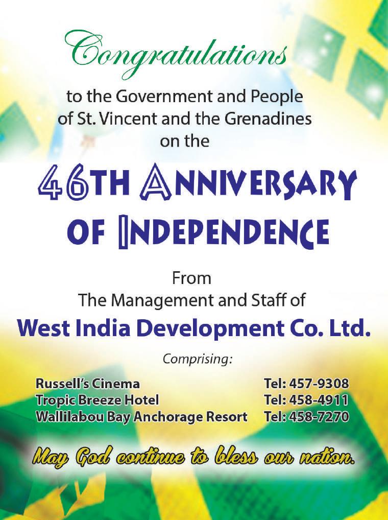 Happy anniversary to the Government and people of St. Vincent and the Grenadines.
