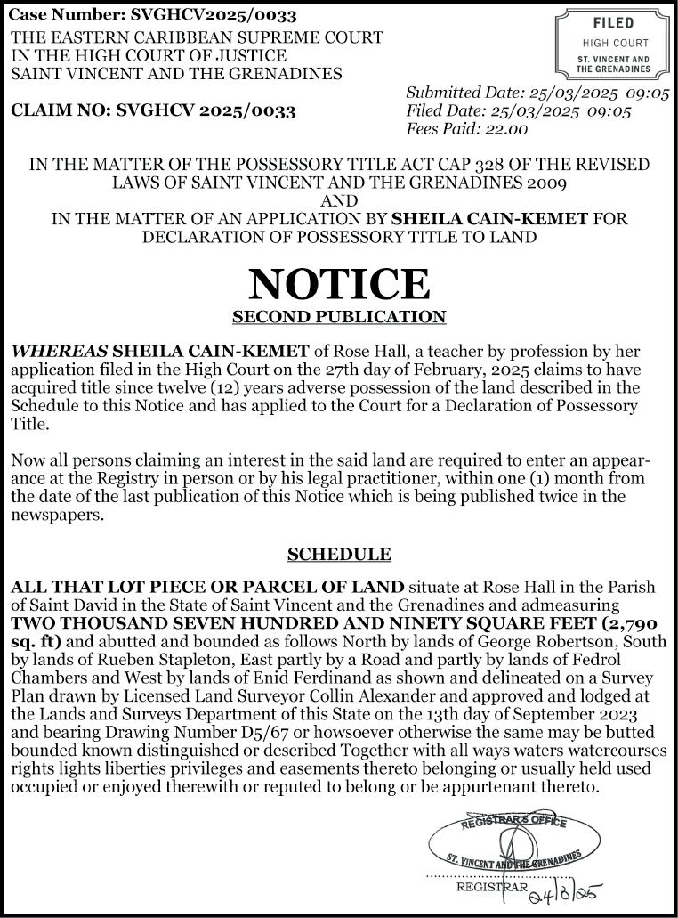 In a related item, the death of Michael ‘Boxer’ Richards of Diamond was officially ruled a homicide. This when Richards, who was shot on April 1 in the vicinity of Mahogany Bar/Bus Stop on Murray’s Road, succumbed to his injuries on Thursday, April 17, at the Milton Cato Memorial Hospital.
