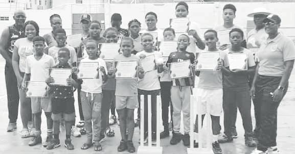 twenty-five males, ages 7 — 15 years, completed the two-week (Aug 7 -18) 2023 Ian Allen Coaching Clinic Cricket Summer Camp.