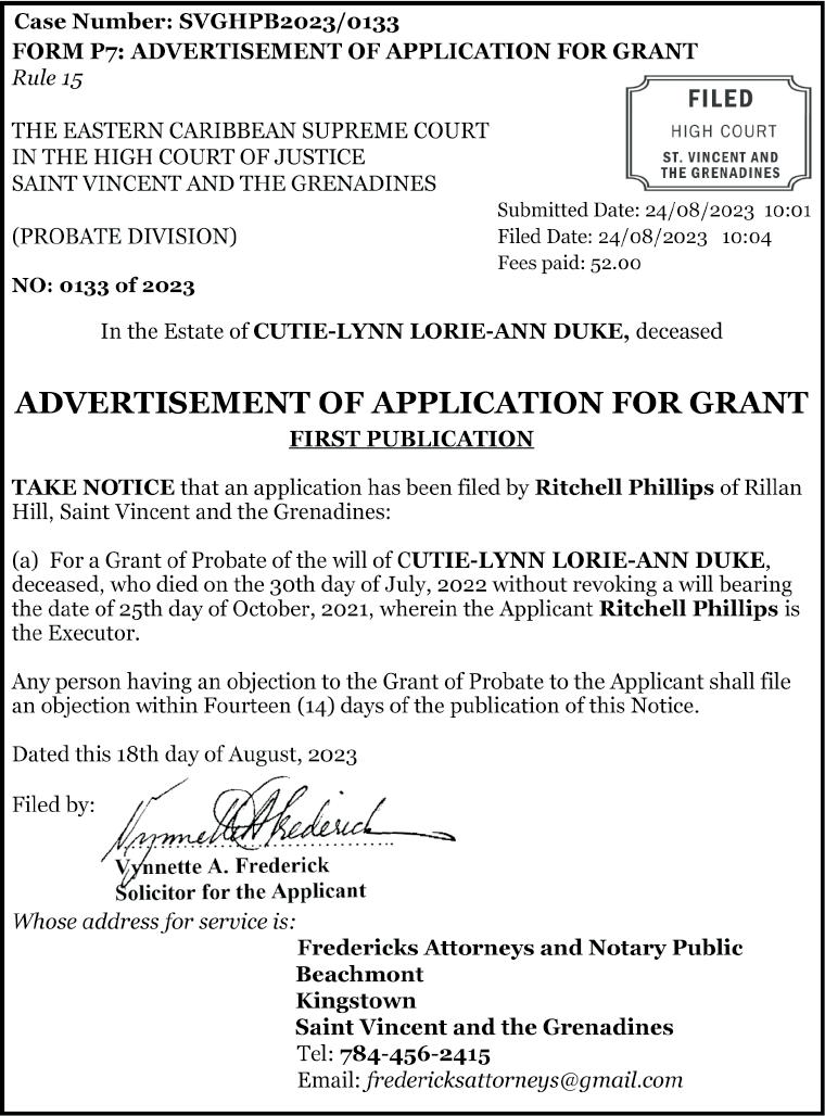 FRIDAY, AUGUST 25, 2023 VOLUME 117, No.34 www.thevincentian.com EC$1.50 Published by The VINCENTIAN Publishing Co. Ltd, St. Vincent and the Grenadines; Printed by the SVG Publishers Inc., Campden Park. AI REAL ESTATE Cedars 4 bedrm Property on 7,955 sq.ft. - $325,000.00 - H130 Chauncey incomplete property on 11,129 sq.ft. - $100,000.00 - H125 Dumbarton 9,305 sq.ft @ $7.00 p.s.f. - $65,135.00 - BB214 McKies Hill 5 bedrm Property on 4,026 sq.ft. - $450,000.00 - H403 (784)- 457-2087/(718)-807-4376 office (784)-493-9431/(784)-533-0431donp@vincysurf.comwhatsappcell