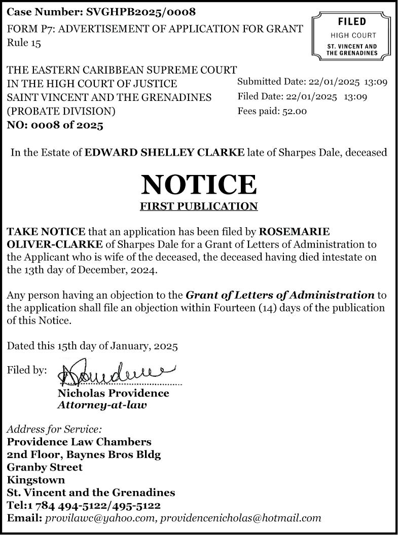 The offence was committed in Park Hill. Sterling appeared before the Kingstown Magistrate Court on November 26, 2025. He was remanded into custody and the matter was adjourned and transferred to the Serious Offences Court for bail review on December 1, 2025.