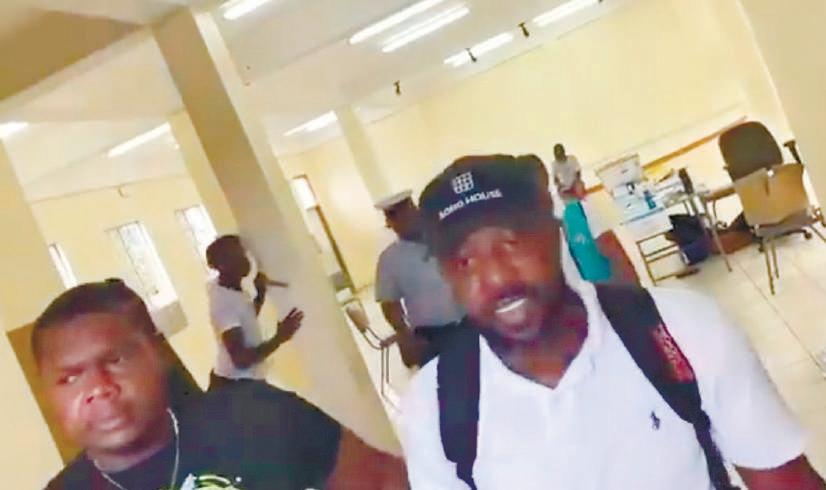 Right: Carlos James in confrontation with a resident in the Chateaubelair public road.
