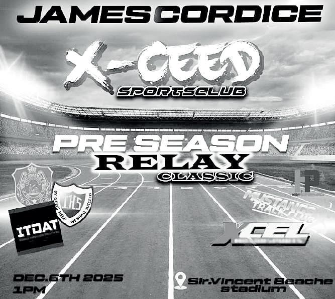 THE 3RD ANNUAL James Cordice/X-Ceed Sports Club PreSeason Relay Classic is set for December 06,2025, at the Diamond Track and Field Facility. Information reaching THE VINCENTIAN indicates that the proposed programme of events for the Classis is expected to include:
