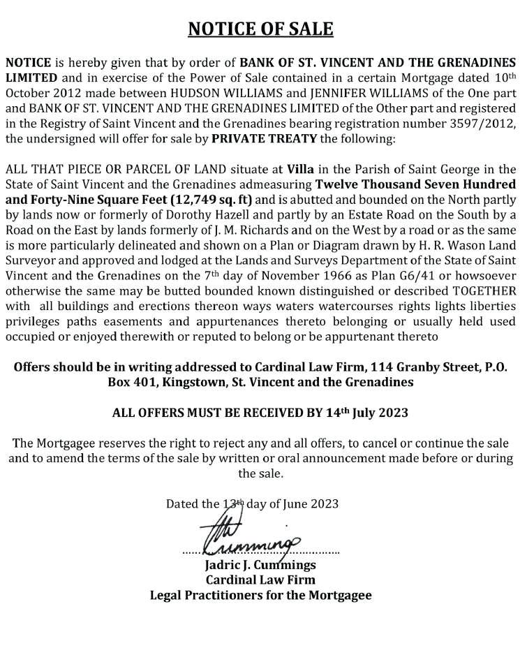 FRIDAY, JUNE 30, 2023 VOLUME 117, No.25 www.thevincentian.com EC$1.50 Published by The VINCENTIAN Publishing Co. Ltd, St. Vincent and the Grenadines; Printed by the SVG Publishers Inc., Campden Park. AI REAL ESTATE Fair Hall Executive house on 1 ½ cultivated acres. - $1,400,000.00 - H534 Victoria Village 21,791 sq.ft. - $250,596.50 - BB402