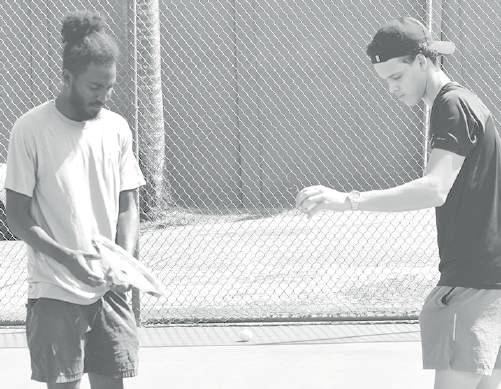 local tournaments, then go on to do so regionally, because they have the potential … The longterm ambitions for my charges are to get to the professional level. I am trying my best to prepare them as best as I could and instill the right things in them”, Ballantyne projected. Ballantyne coaches at the National Tennis Centre at Villa.