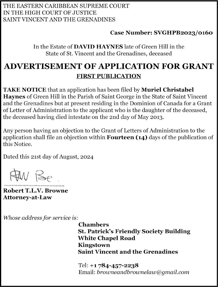Additionally, the accused allegedly assaulted a 42-year-old domestic also from Barrouallie, by hitting her on the right side of her head with a bottle, causing actual bodily harm. This offence was committed on August 5, 2024, in Barrouallie. Cont’d on pg 23