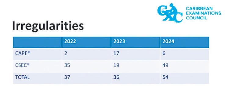 As far as a breakdown of cheating across the CXC examinations is concerned, the figures released showed that the increase was mainly in the Caribbean Secondary Education Certificate (CSEC) exams, where there was a striking increase from 19 in 2023 to 49 in 2024.
