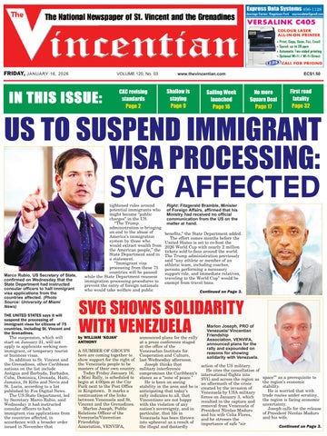 Kudos must be given to Garth Saunders and the rest of the CWSA team for their prompt response, after the water supply of many residents was halted after the storm. Hazel Baptiste, Bernard some relief from the pain Nanton, and Yowani and suffering that the Bartholomew. families were undergoing. Prime Minister Dr. Gonsalves announced the Continued on Page 3. decision of the state covering funeral expenses as helping to provide MORE STORIES INSIDE.