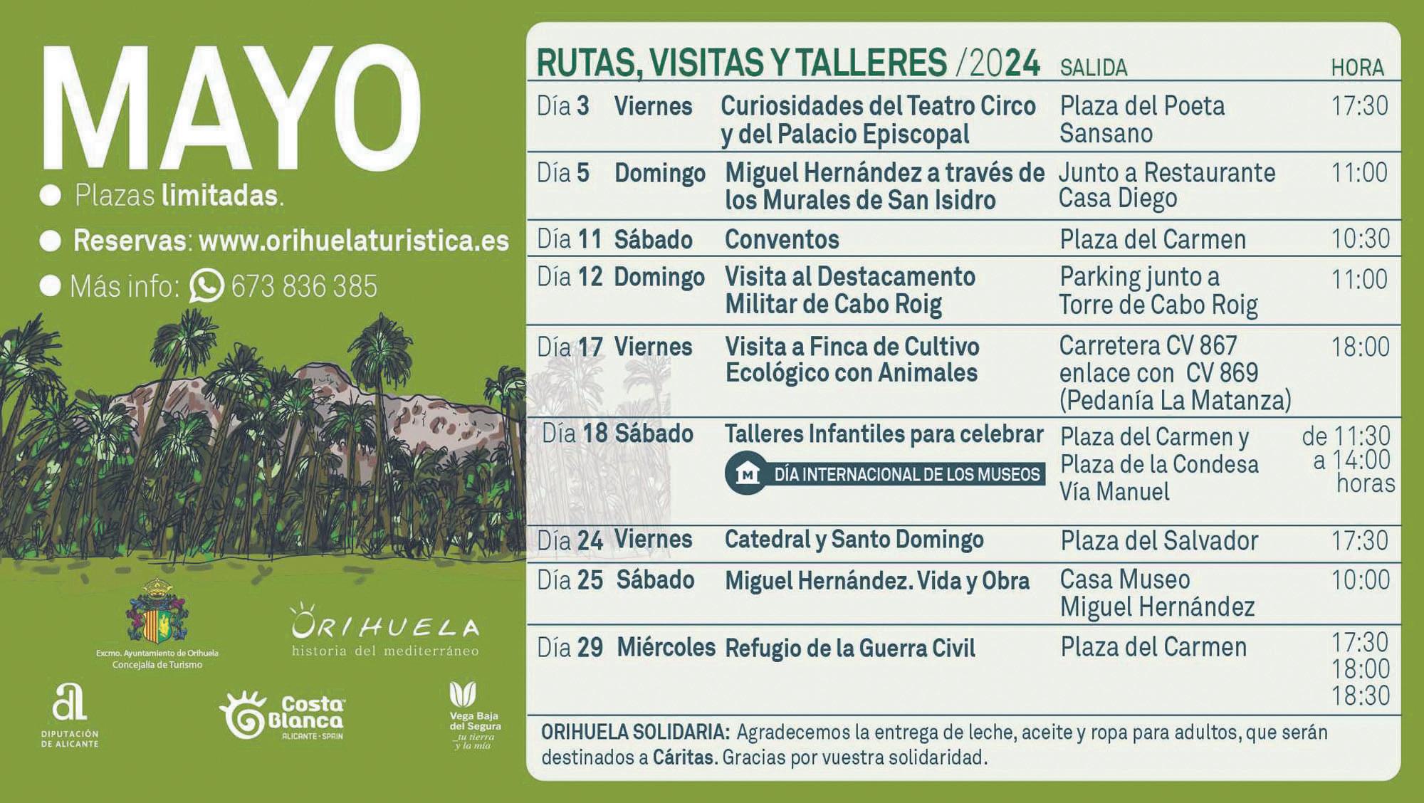 Other notable routes in May include to the poet Miguel Hernández on May 5 and 25,where visitors will be able to immerse themselves in the life and work of the poet through two tours: "Miguel Hernández through the Murals of San Isidro" and "Miguel Hernández: Life and Work."