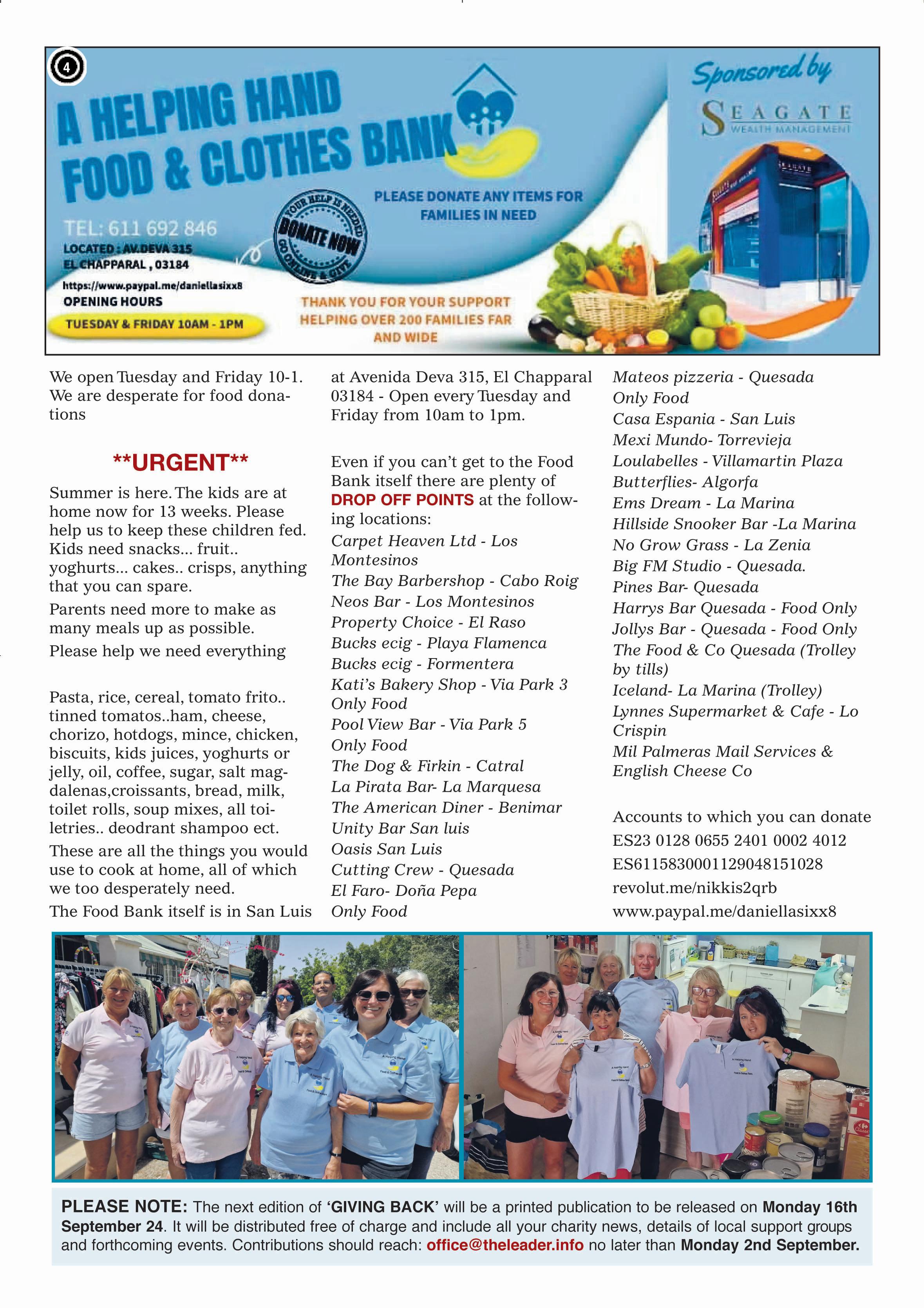 Welcome to Edition 2 of this new magazine aimed at local charities, 'GIVING BACK', which is distributed purely for the benefit of those who are in need of our assistance, with all profits being donated accordingly.