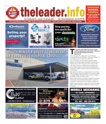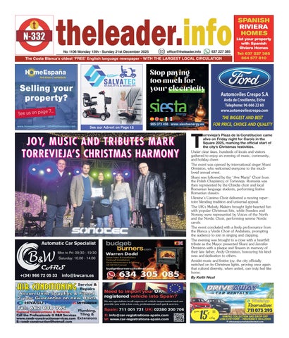 No 990 Monday 25th September - Sunday 1st October 2023 637 227 385 office@theleader.info Now in our 20th year of keeping people safe and informed - The Costa Blancaís oldest ëFREEíEnglish language newspaper