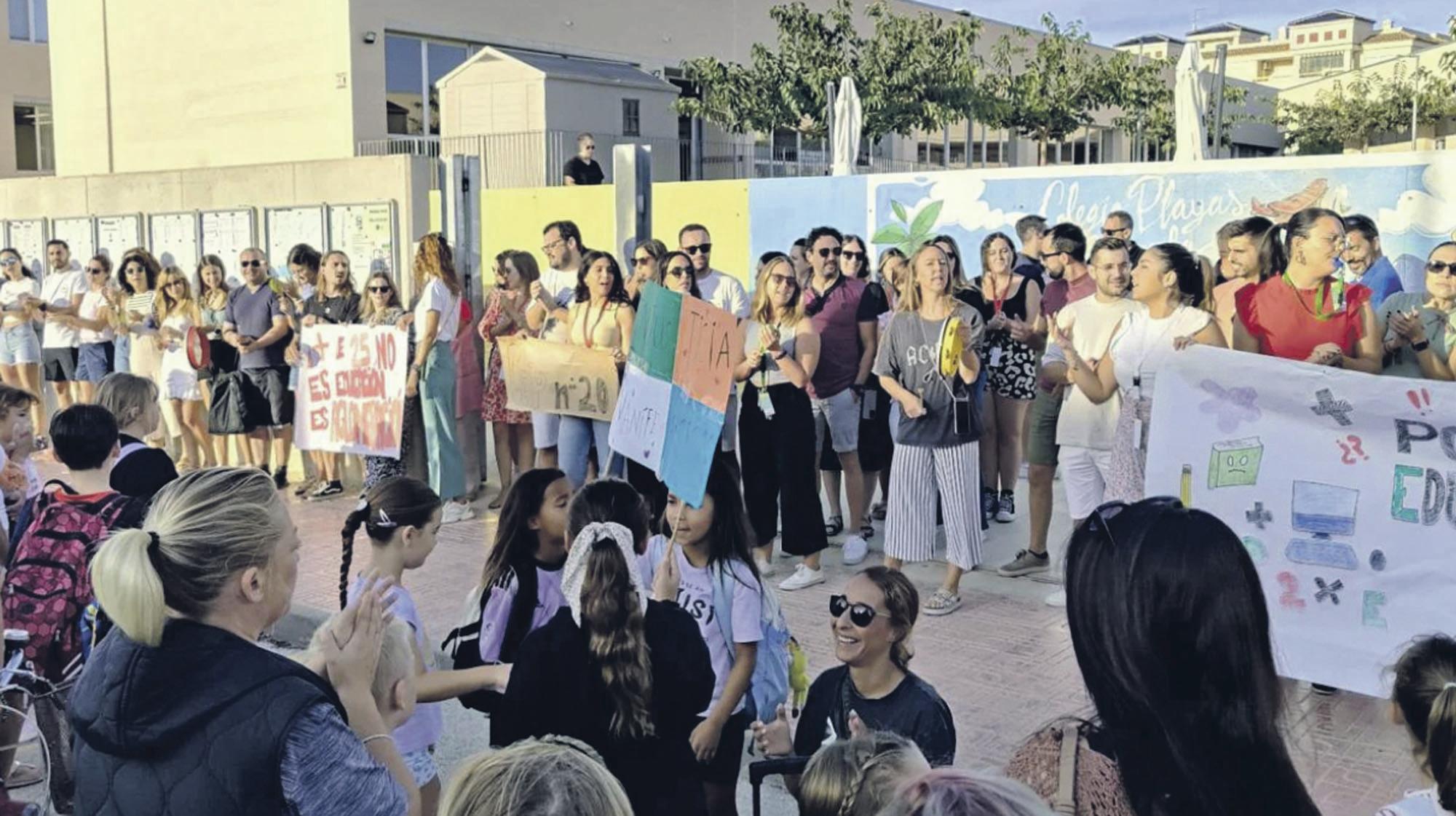 The educational community of CEIP Playas de Orihuela has taken to the streets to protest the overcrowding in their school and the lack of progress in constructing a third school in the area. They are demanding that the local authorities expedite the implementation of prefabricated classrooms as a temporary solution.