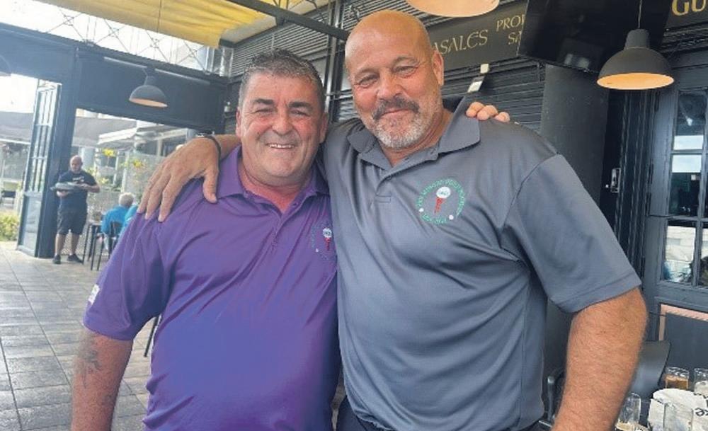tic meal voucher, a beautiful handmade leather head cover, IPTV subscription, tees, golf hats and Galaxy Golf vouchers and finally a big old cash prize, apologies if any were missed out. A big thank you to Barry Roehrig, Peter Turbefield and Macker (aka Alan Macdonald) for doing their thing selling the tickets. And another big thank you to Barry Roehrig, our retired Secretary, who still does so much in organising things in general. We also wished our member, Rod East, a very happy birthday.