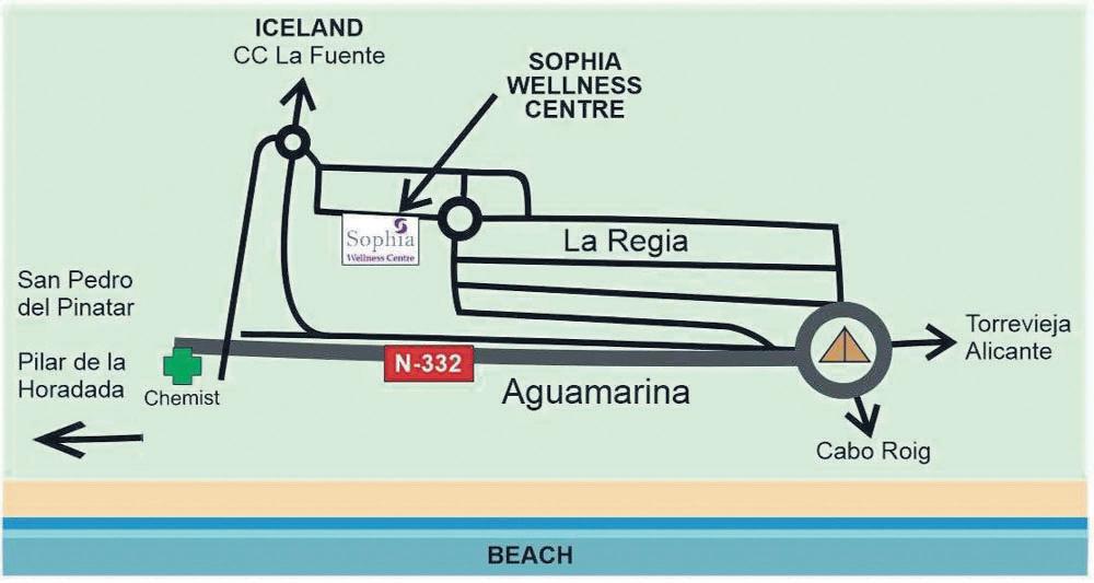 Situated beside Cabo Roig in the older Spanish area of La Regia, the Sophia Wellness Centre was built in 2005 and looks as inviting today as it did on the day it was built. With a strong emphasis on wellness, the centre has two gyms, one traditional and the other specifically designed for more mature clients. There is also a physiotherapist, a Thai massage, a doctor specializing in lady’s medicine.