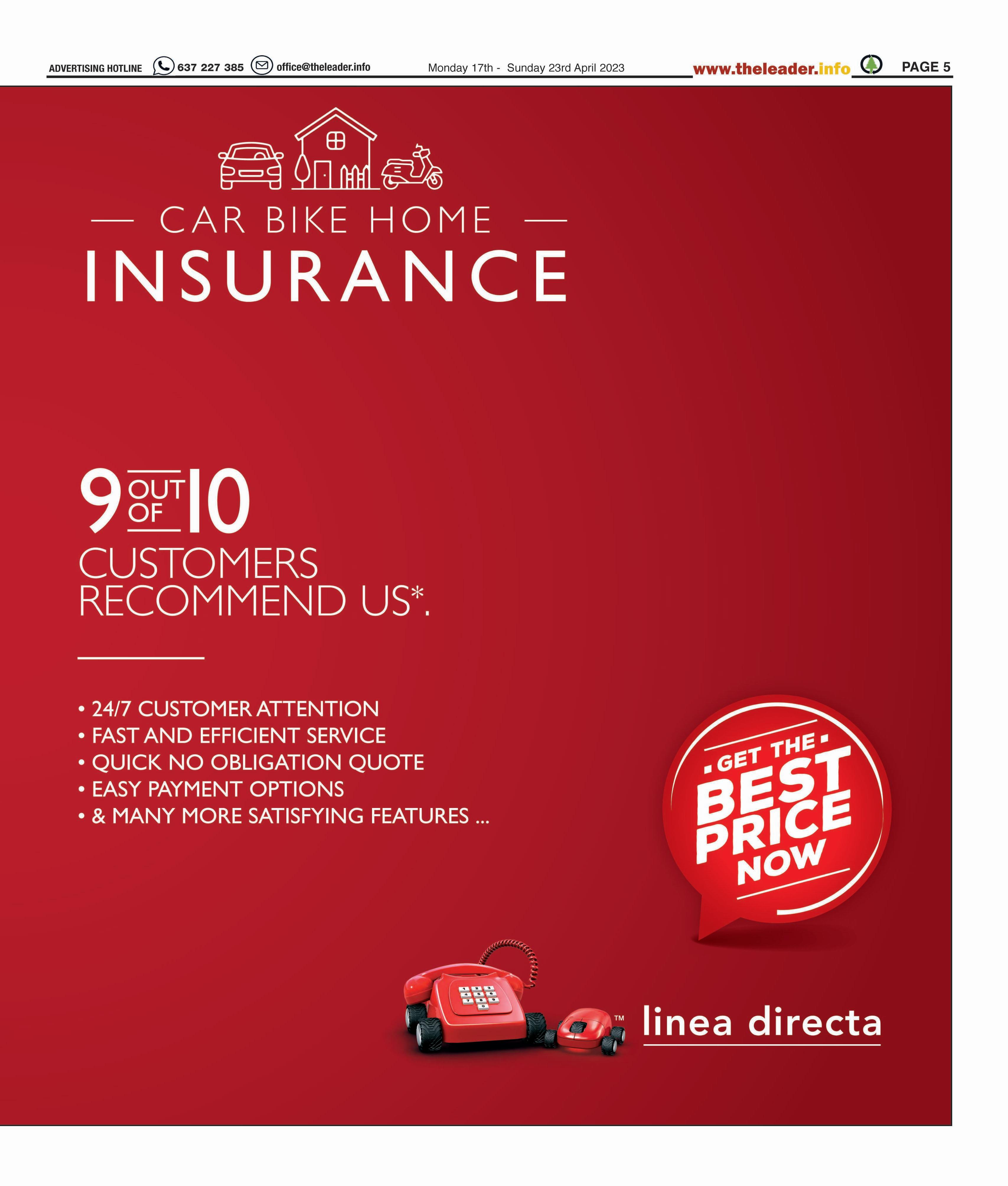 PAGE 3 www.theleader.info ADVERTISINGHOTLINE Monday 17th - Sunday 23rd April 2023 office@theleader.info 637 227 385