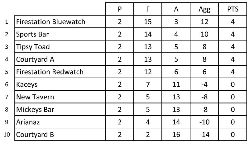 Penthouse Division Results Week 2 May 21st Courtyard A6 - 3 Mickeys Bar