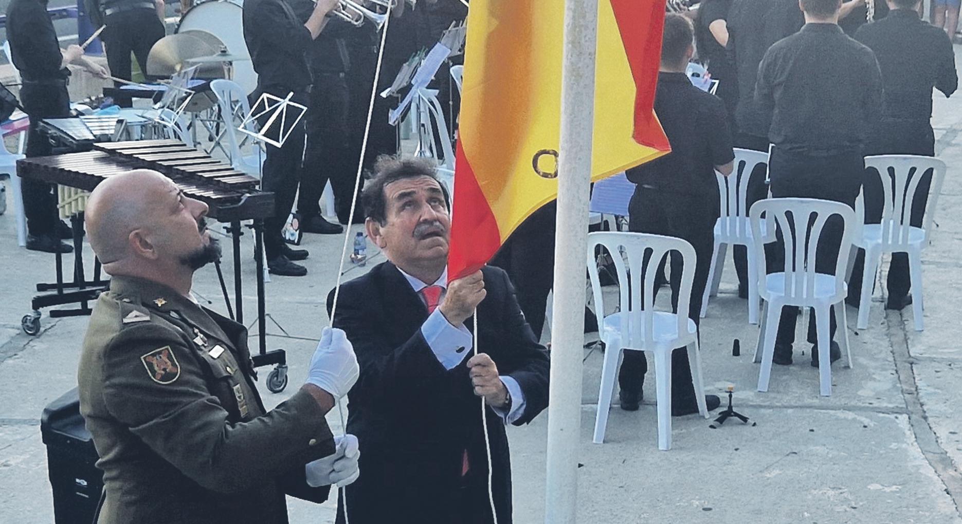 In Torrevieja the celebration was held in the Plaza de la Constitucion where the 'senyera', the flag of all Valencians, was raised by the Queen of Salt, Mireya Hernandez, to join the National flag, under the watchful eye of the mayor, Eduardo Dolon while many members of the municipal corporation followed the ceremony from the seats.