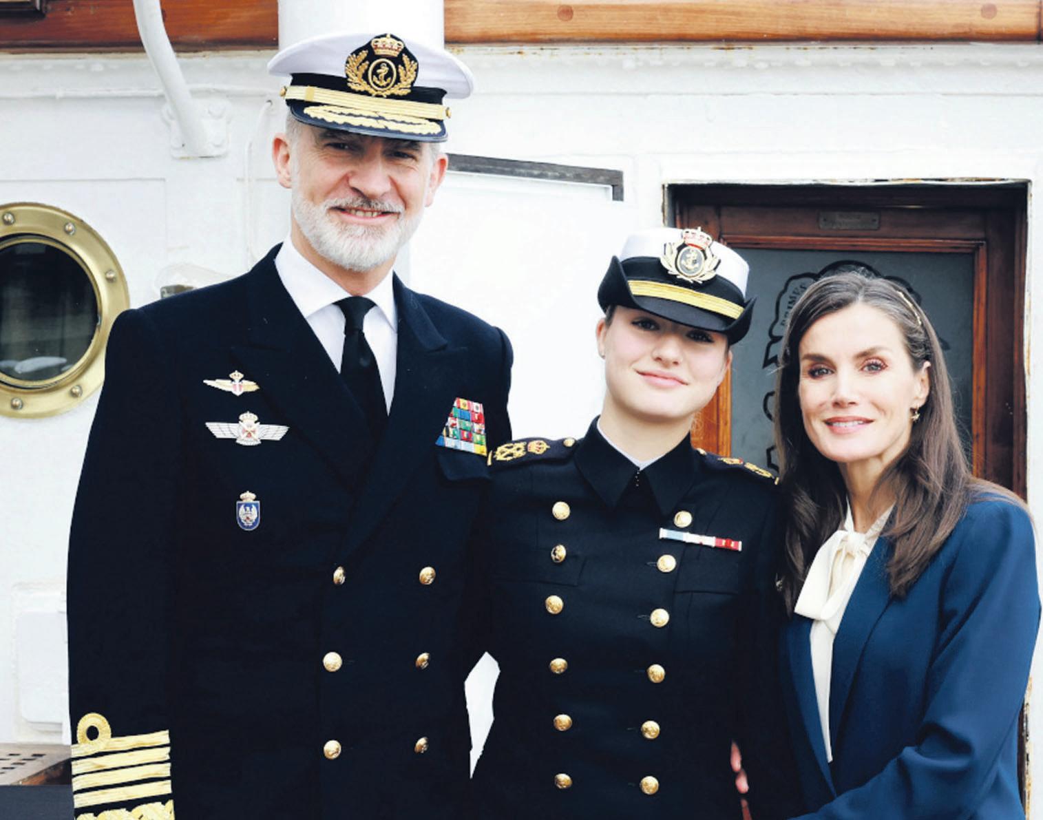 From the dock, the King and Queen exchanged emotional glances as Leonor stood with her companions. King Felipe VI