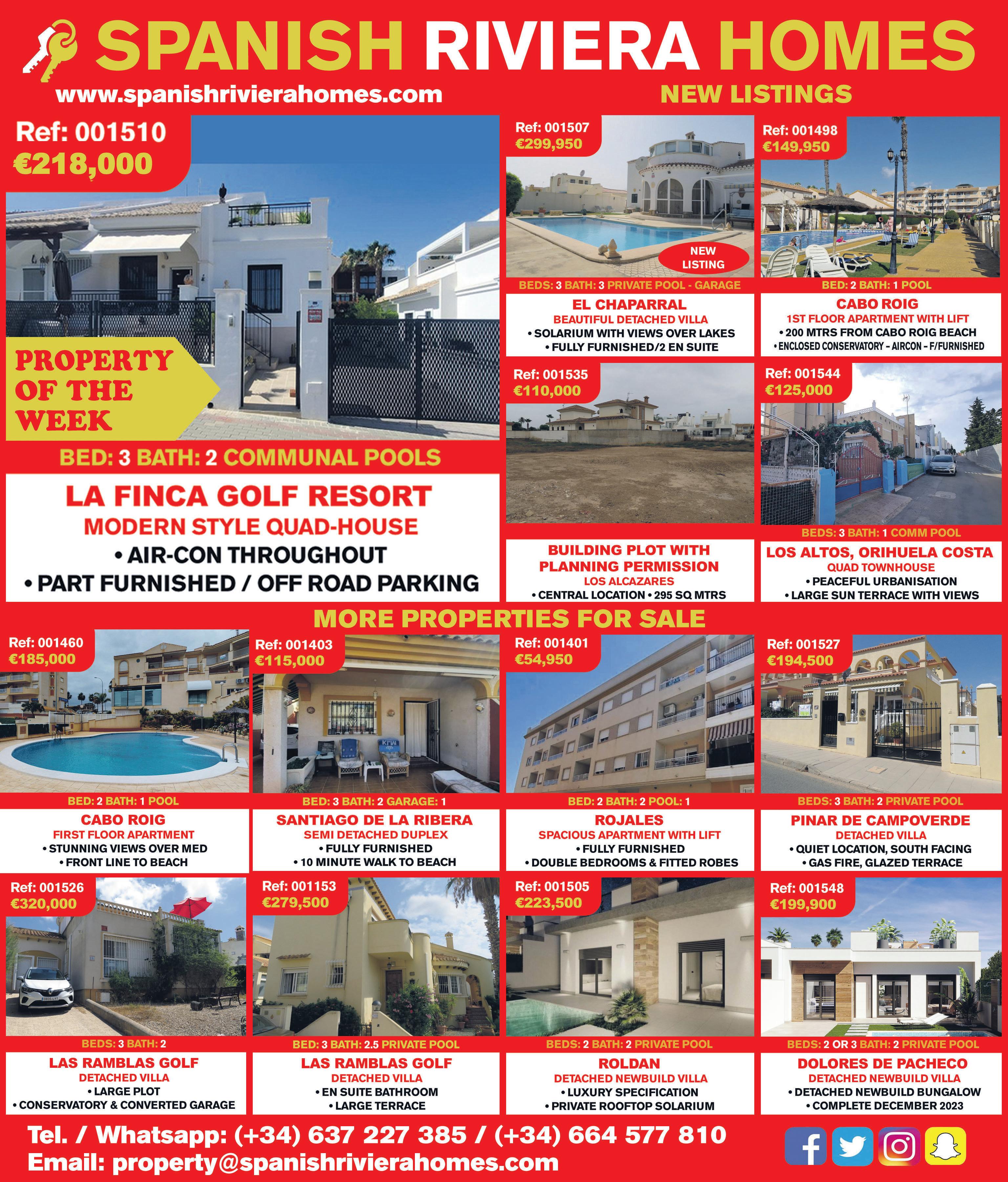 The Costa Blanca and Costa Calida Leader, its publishers, members of staff and its agents do not accept responsibility for claims by advertisers nor can it be held responsible for any errors in advertisements which are reproduced from poor artwork, low quality electronic data or inadequate instructions for text or other layout features. Further no responsibility is accepted for any loss or damage caused by an error, inaccuracy or non-appearance of any advertisement, although all advertisements produced are checked prior to insertion. We regret that we cannot accept responsibility for more than ONE incorrect insertion and that no re-publication will be granted in the case of typographical or minor changes which do not affect the value of the advertisement. E&OE. NO PARTOF THIS NEWSPAPER MAYBE REPRODUCED WITHOUT THE WRITTEN CONSENTOF THE PUBLISHERS.