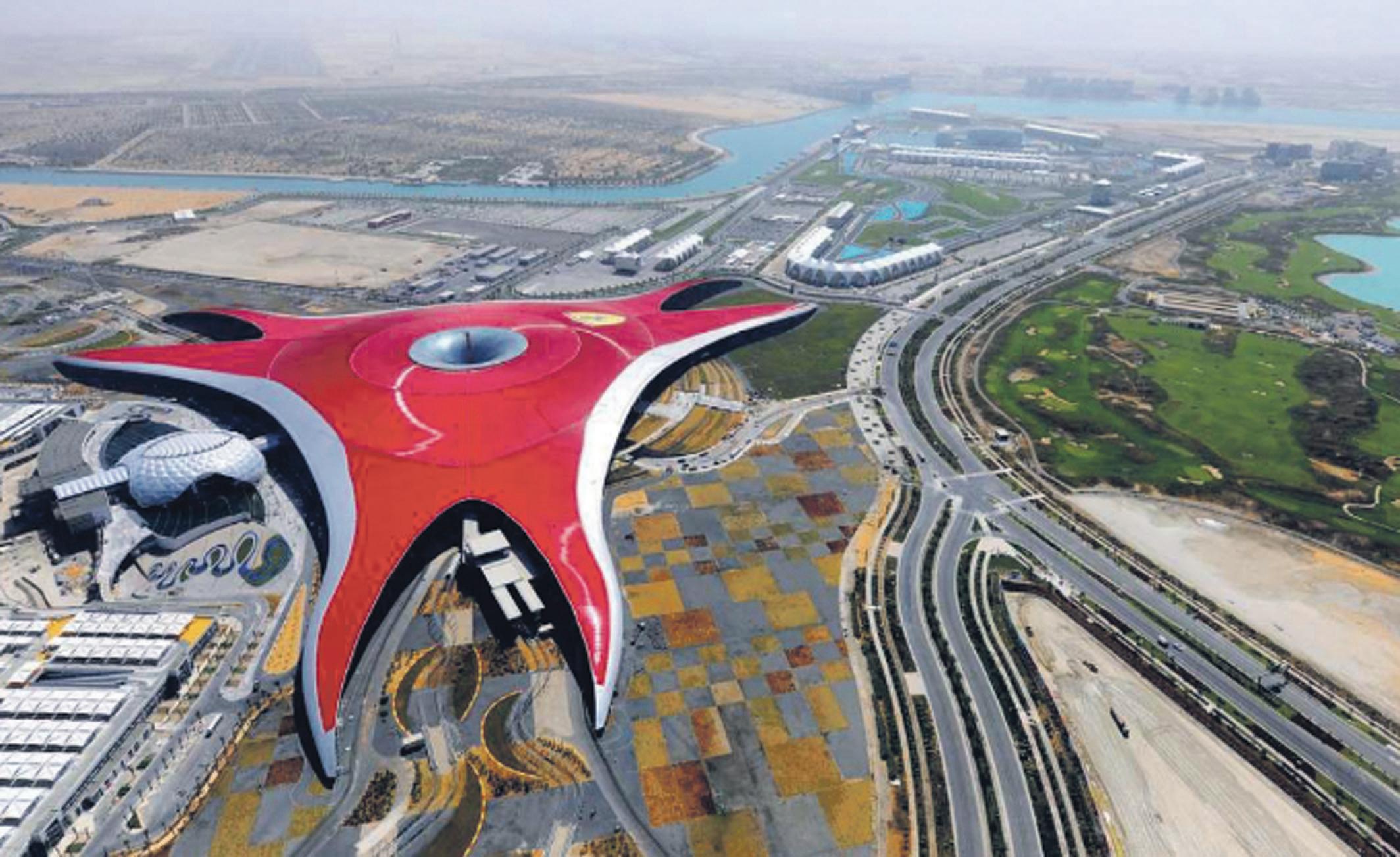 YAS ISLAND,Abu Dhabi,is home to Yas Waterworld, Warner Bros World,Ferrari World and a multitude of five star hotels.Ferrari World is the largest indoor theme park in the world,shaped like a massive three-pointed star. Visitors can see an operating Ferrari factory,take a spin on a real Ferrari,or bring up their breakfast on the “Formula Rossa,”a thrill ride that sets the world record for roller coaster rides.