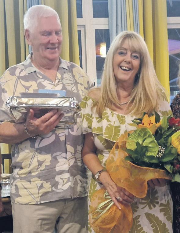 Davis and his wife Chris, were joined by almost 30 friends and collegues, some of which had flown from UK, especially to attend the event. He was presented with a commmorataive shield and a mug while wife Sue received a colourful bouquet of flowers.