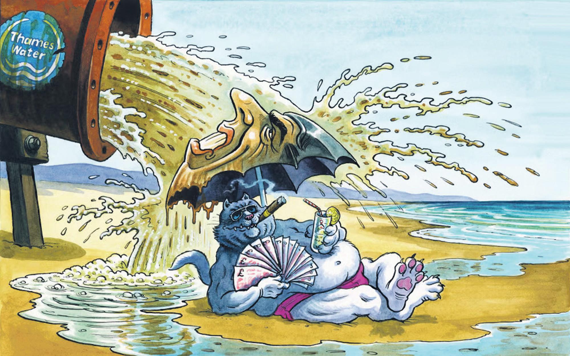 And the proverbial has certainly hit the fan now, with the disclosure that the largest water company, Thames, serving a sixth of the population of England and Wales, is £14bn. in debt; has to pay 20% of the money it receives in interest on debt, while still paying out huge dividends of shareholders and more than a million a year to its chief exec. Last week it was fined £3.3m. for discharging millions of litres of raw sewage into a river close to a posh area near Gatwick Airport. In my book it should be the individual directors fined, not the company.