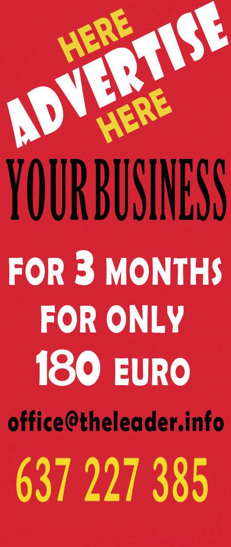 PAGE 24 Monday 28th August - Sunday 3rd September 2023 www.theleader.info ADVERTISINGHOTLINE 637 227 385 office@theleader.info