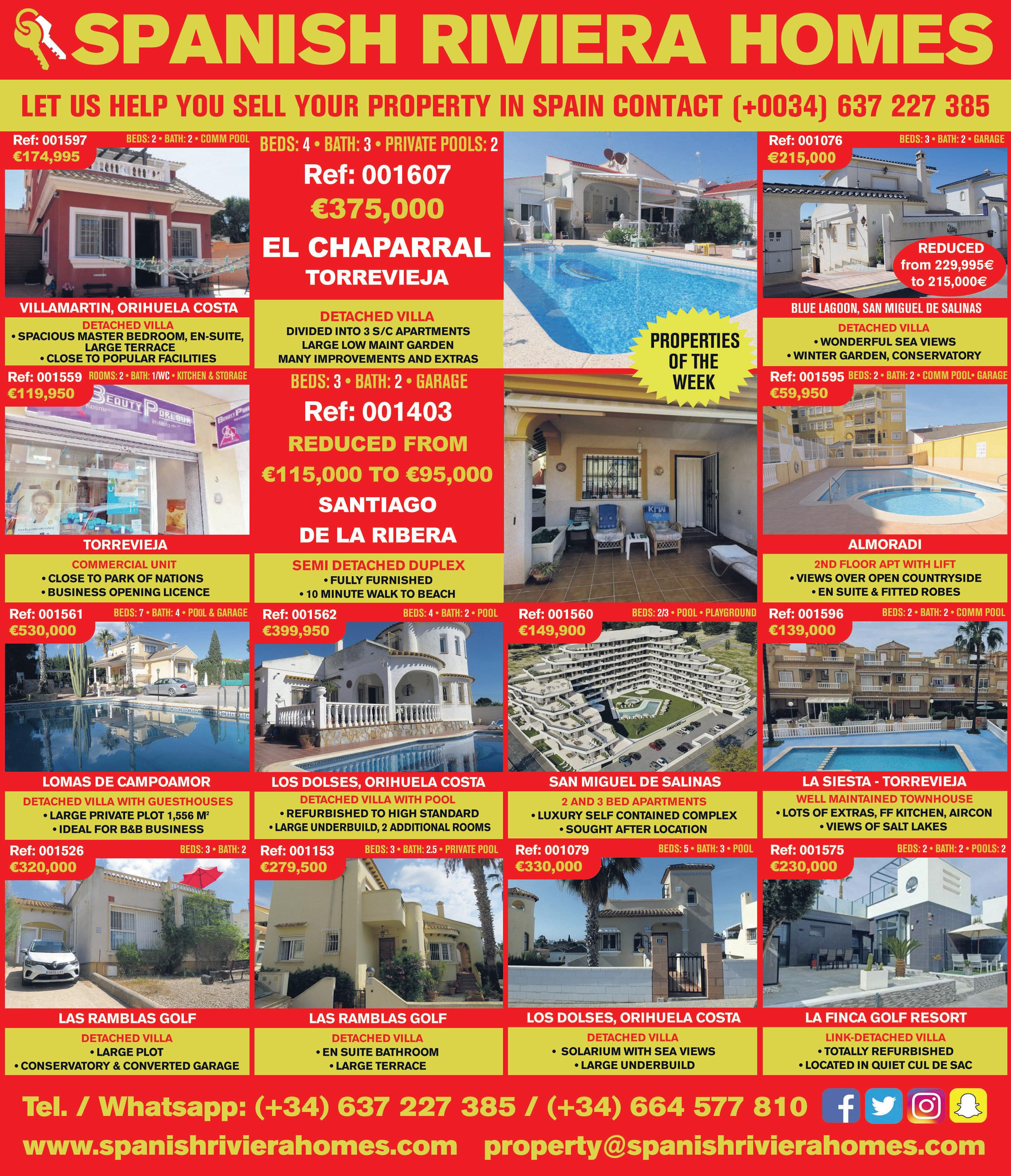 The Costa Blanca and Costa Calida Leader, its publishers, members of staff and its agents do not accept responsibility for claims by advertisers nor can it be held responsible for any errors in advertisements which are reproduced from poor artwork, low quality electronic data or inadequate instructions for text or other layout features. Further no responsibility is accepted for any loss or damage caused by an error, inaccuracy or non-appearance of any advertisement, although all advertisements produced are checked prior to insertion. We regret that we cannot accept responsibility for more than ONE incorrect insertion and that no re-publication will be granted in the case of typographical or minor changes which do not affect the value of the advertisement. E&OE. NO PARTOF THIS NEWSPAPER MAYBE REPRODUCED WITHOUT THE WRITTEN CONSENTOF THE PUBLISHERS.