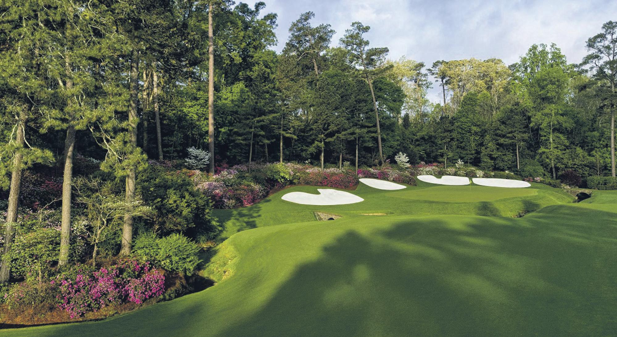 Rae's Creek flows behind the 11th green and in front of the 12th green at Amen Corner. The 11th (White Dogwood) is a par-4, the 12th (Golden bell) a par-3 and the 13th (Azalea) a par-5. .