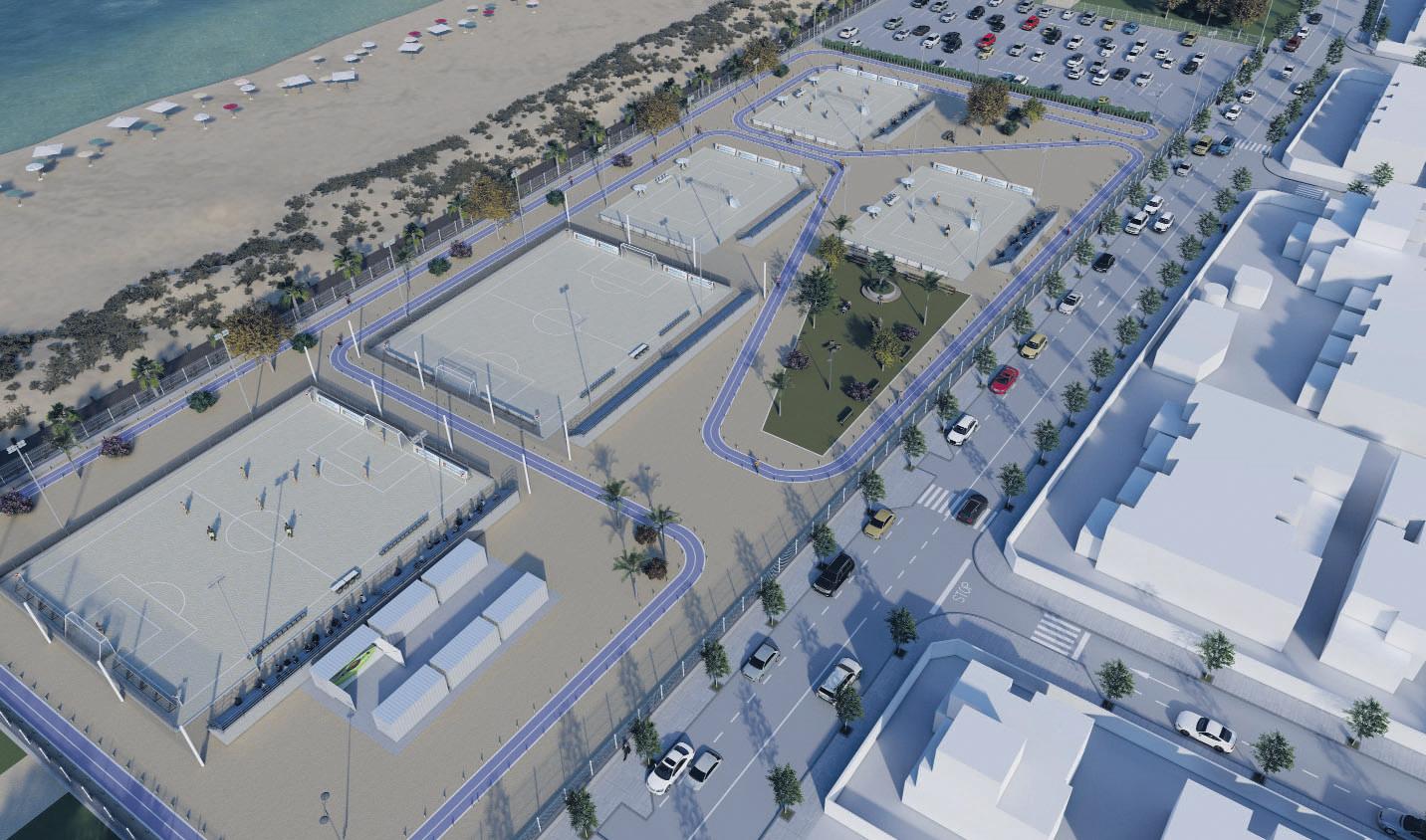 Included on the 18,000-square-meter plot that is closest to the rambla, located on Calle Catamaran, 16, between Parque Europa and Parque del Alheli, will be an 870-meter running circuit, two beach football courts, three beach volleyball courts, a large area for the storage of water sports equipment, and parking.