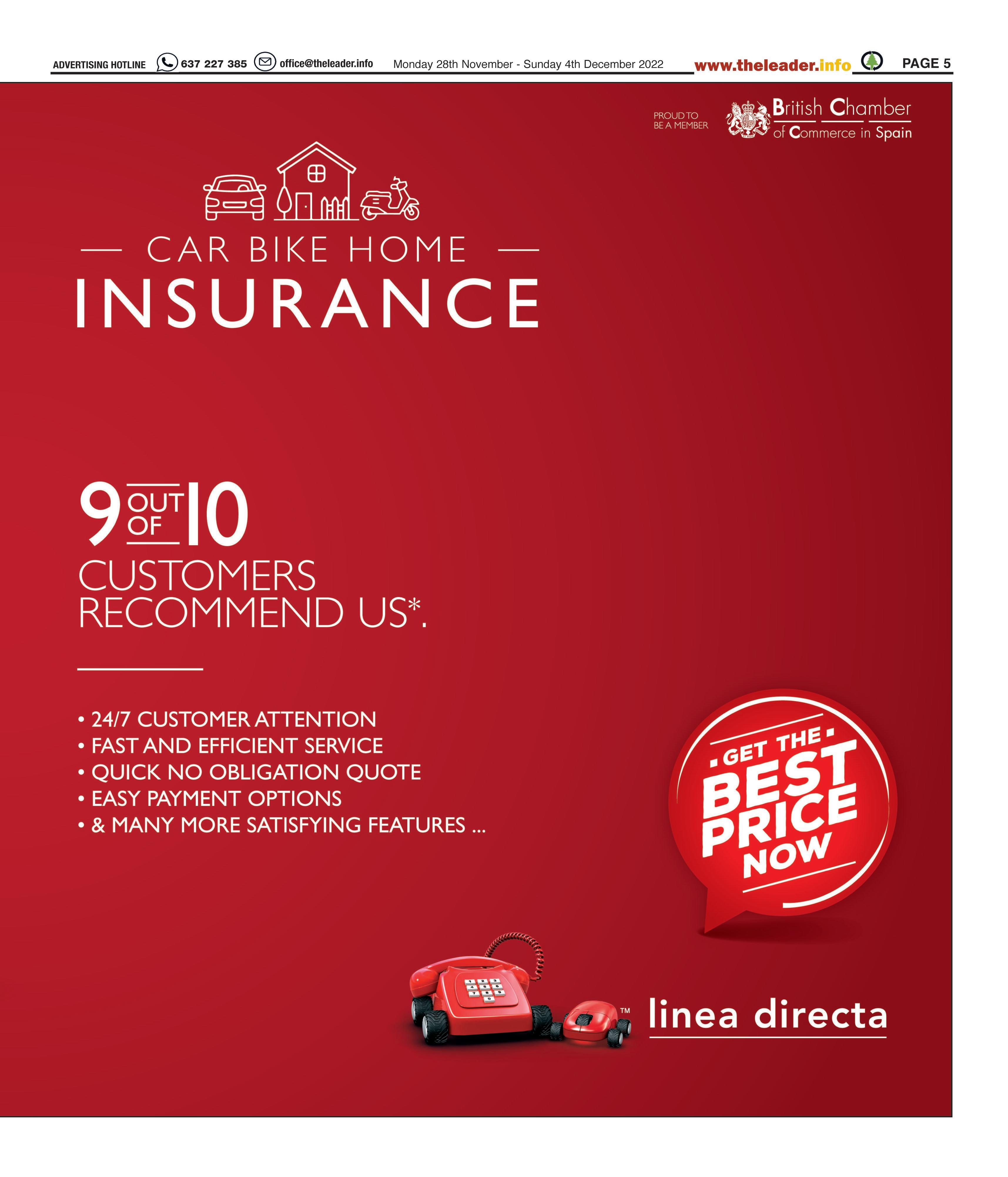 No 947 Monday 28th November - Sunday 4th December 2022 637 227 385 office@theleader.info Keeping people safe and informed for over 18 years - The Costa Blancaís oldest ëFREEíEnglish language newspaper