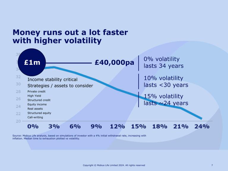 Which 'risk on' asset classes and solutions are best suited to decumulation? (Pick 2 options)