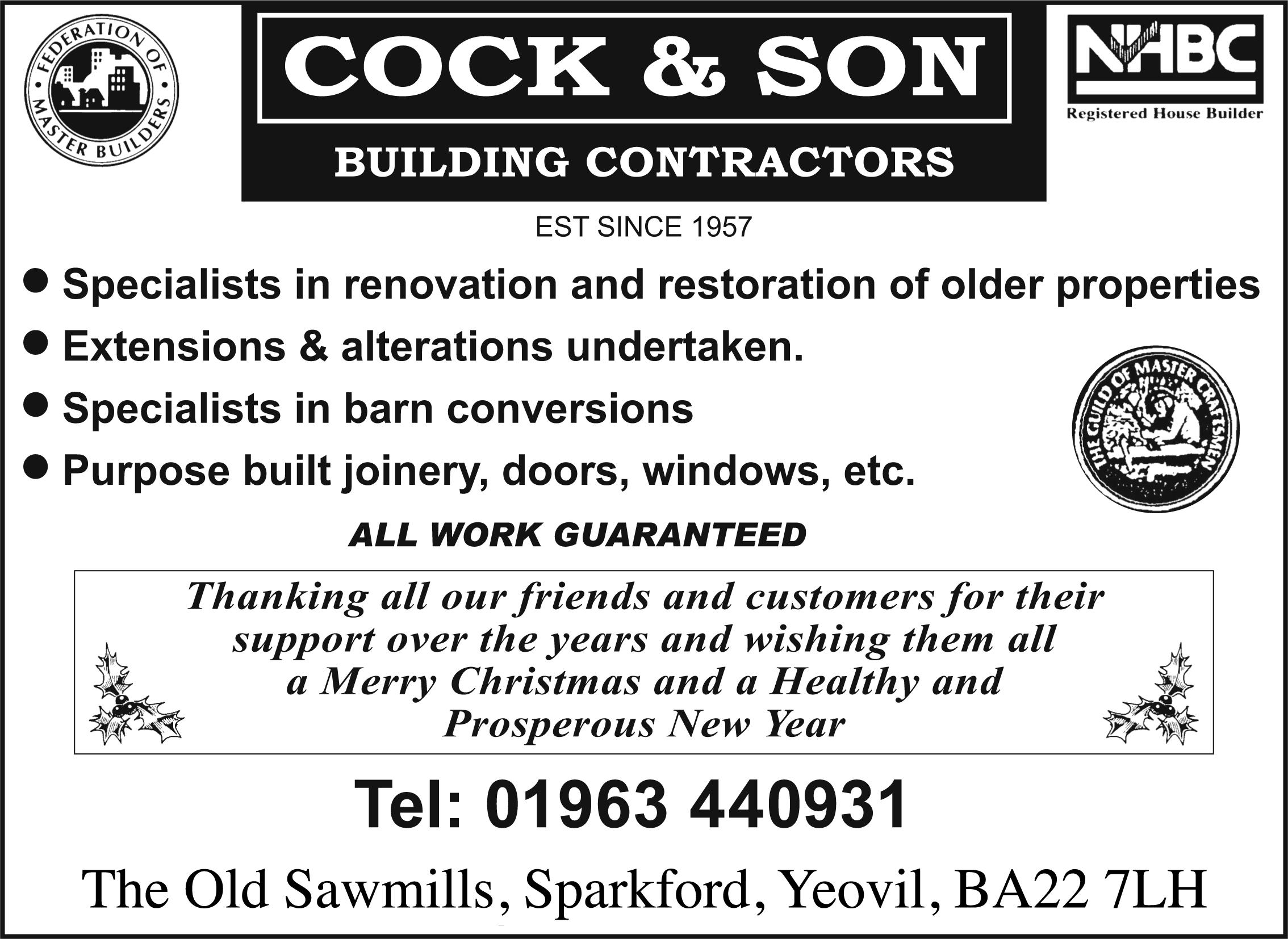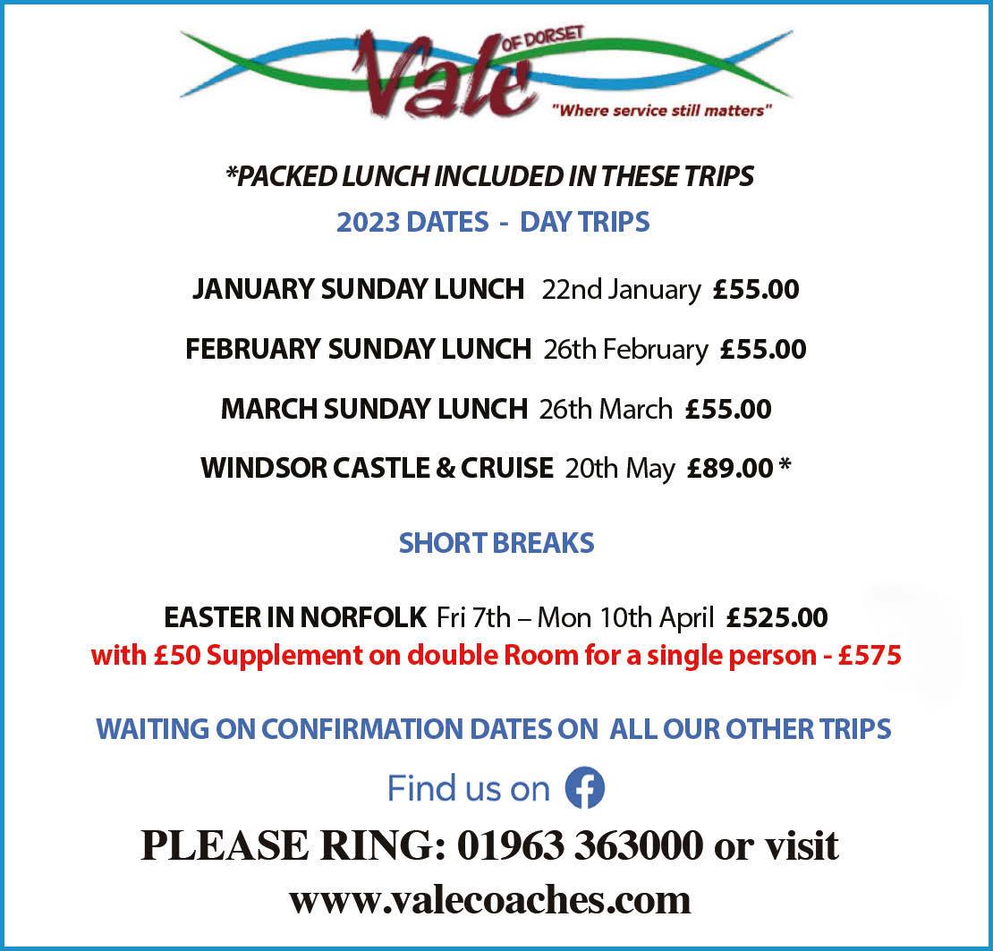 THE VISITOR Christmas/January 2023 41 PHONE - a - FIRM • PHONE - a - FIRM TV & AUDIO SPECIALISTS SINCE 1968 ● SALES ● SERVICING ● REPAIRS ● INSTALLATIONS Greenhill, Sherborne, DT9 4EW Tel: 01935 813451 www.goddenandcurtis.co.uk Damian Hoddinott PLUMBING SERVICES 01963 441232 07971 676111
