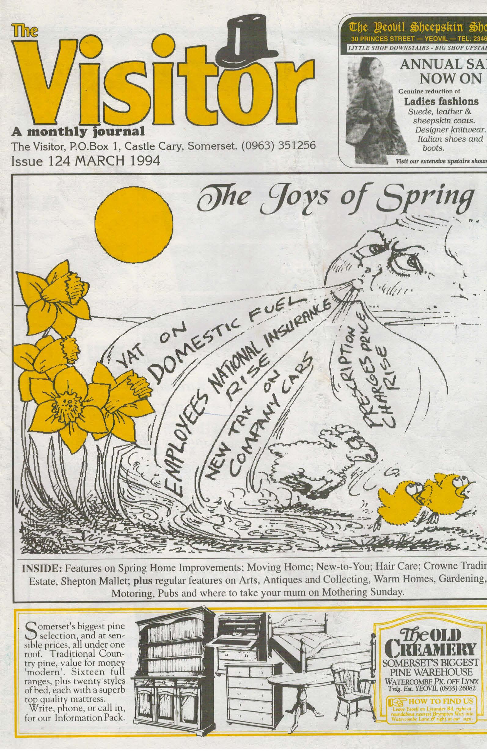 TRADITION has it that ‘March winds and April showers bring forth May flowers’. The winds depicted in the front-cover cartoon on the March 1994 Visitor told a very different story and provide a stark reminder of the country’s financial woes at that time. Under the heading ‘The Joys of Spring’ they were blowing ‘VAT on domestic fuel’, ‘Employees National Insurance rise’, ‘New tax on company cars’ and ‘Prescription charges price rise’. John Major’s government was certainly making itself unpopular with many people. In 1992 his Chancellor of the Exchequer, Norman Lamont, had withdrawn the country from the European Exchange Rate Mechanism, and in 1994 it seemed that its citizens were paying the price. Incidentally the cartoonist, Geoff Thompson, still produces cartoons for the Visitor every month.
