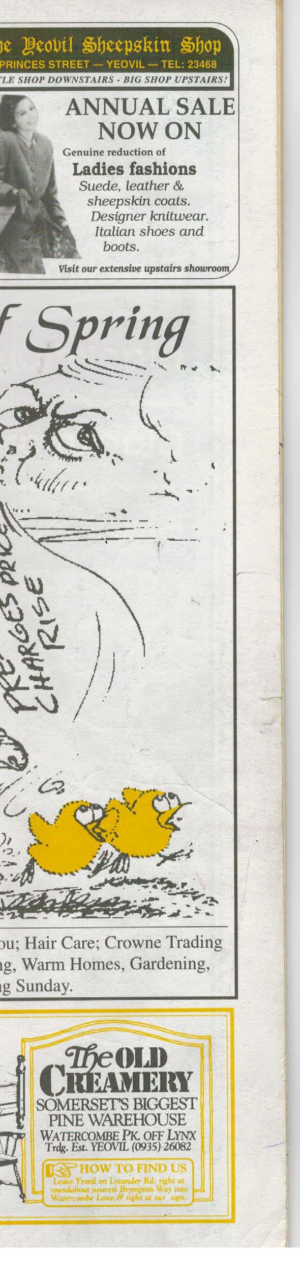 NN. ANNOUNCEMENTS & CLASSIFIED 34 ANTIQUES 28 CROSSWORD 34 FOR ALL THINGS IN SPRING 16 GARDENING 26 GOLDEN YEARS Care of the Elderly 12 HOUSE & HOME Spring Homes 22 ILMINSTER Business Focus 10 LEISURE 9 LOOKING GOOD 15 MENTIONED in DISPATCHES 4 MOTORING 25 NOTICE BOARD 9 PHONE A FIRM 33 POP QUIZ 9 PUBS 30 REMEMBER WHEN 32 SHEPTON MALLET Business Focus 18 SPRING GETAWAYS 20 SUDOKU 9 THEY SAY 31 WINE & DINE 29 Cartoons by GEOFF THOMPSON April Issue Deadline: 19th March Published: 29th March
